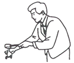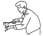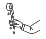 1. Take the water dipper in your right hand, and pour water onto your left hand.