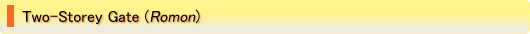 The Romon stands nearest the Hall of Worship after passing through the first torii, with the result that it is sometimes also referred to as the shinmon ("divine gate"). It corresponds to the Great South Gate found in many Buddhist temples. Since the Romon of a Shinto shrine often provides a place for the enshrining of two guardian deities known as zuishin (the Minister of the Right and the Minister of the Left), the gate is also known as the Zuishin Gate. The Kasama Inari Jinja displays two zuishin carved by Washio Sekiran, a famous wood sculptor of the Aki Domain (in present-day Hiroshima Prefecture) and dating from the Bunkyu period (1861-1864).