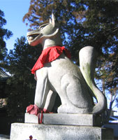 The motif of the fox or horse which is frequently associated with this kami is due to the role of these animals as messengers of the deity, similar to the hawk found at Hachiman shrines and the "Korean lions" (komainu) at many local ujigami (local tutelary deity) shrines. In the medieval period, many such animals were believed to to act as intercessors, carrying the manifold entreaties of humans to their masters in the divine world, and this custom continues at present.