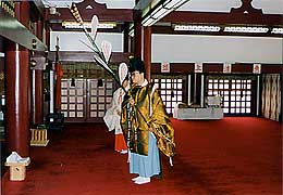 当日神職は装束を着け、巫女を従え御本殿を始め拝殿以下社務所各部屋に至るまで祓具を以って祓を修します。巫女はそれぞれの場所に於いて、奉書の上に塩を三ヶ所山に盛り、酒をそそいで祓を修します。