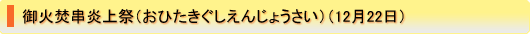 | 12月 | 22日 | 午前9時 | 御火焚串炎上祭 |