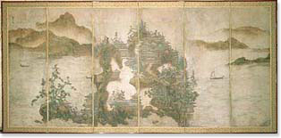 | 屏風 : | 金山寺図(雪村)、桜柳歌合せ短冊(綱吉公拝領)、扇面散し図(木村武山)、水辺の四季(上村淳之) | |